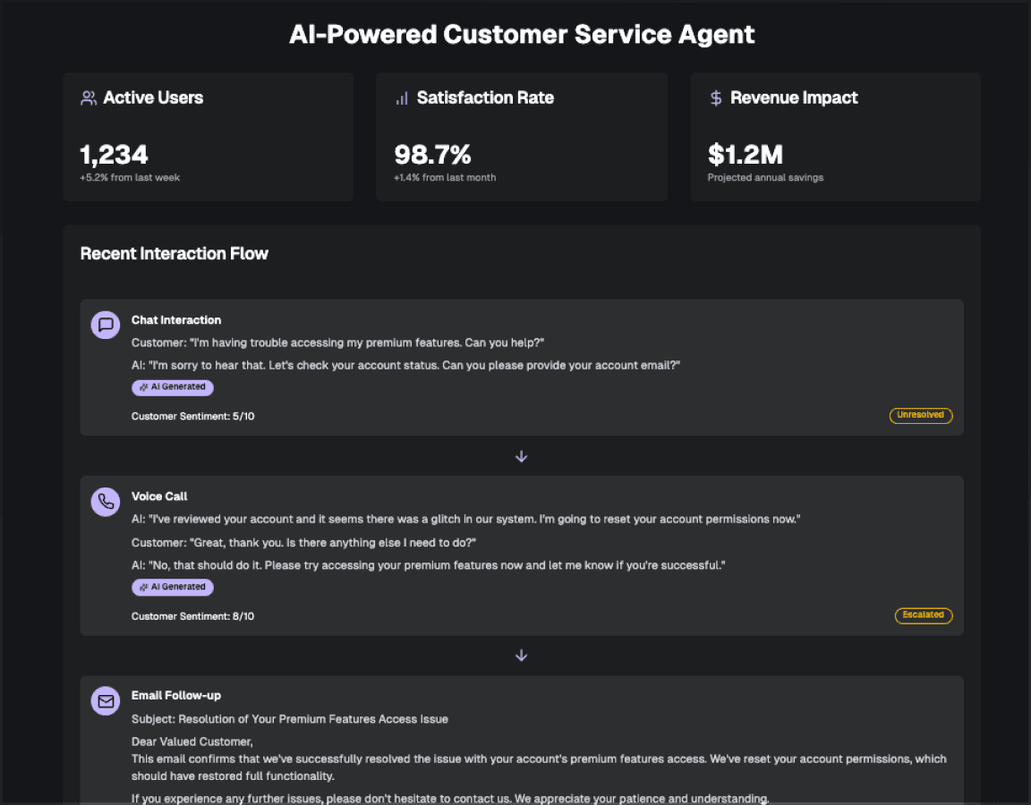 Agents automate complex customer service interactions with omnichannel support.