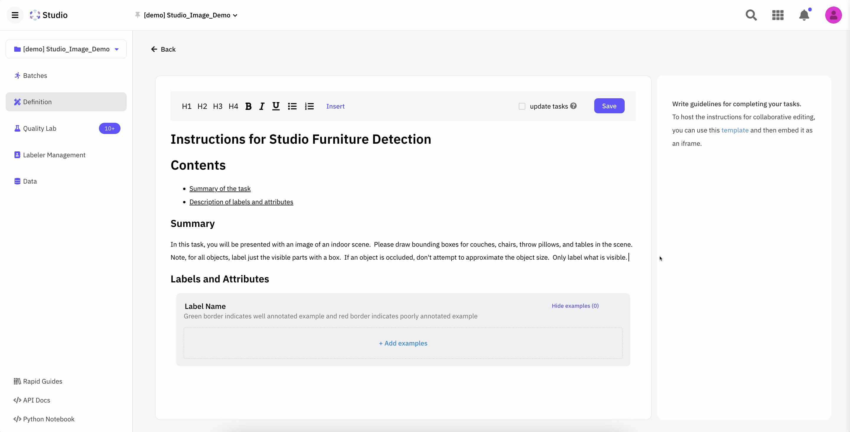 This guide aims to equip you with the knowledge you need to set up high-quality data annotation pipelines. If you are using your own labeling workforce, check out Scale Studio, which offers a best-in-class annotation infrastructure built by expert annotators. Alternatively, Scale Rapid provides an easy way to offload your data labeling and ramp to production volumes if you need labeling resources. If you have any other questions, please reach out, and we will be happy to help.