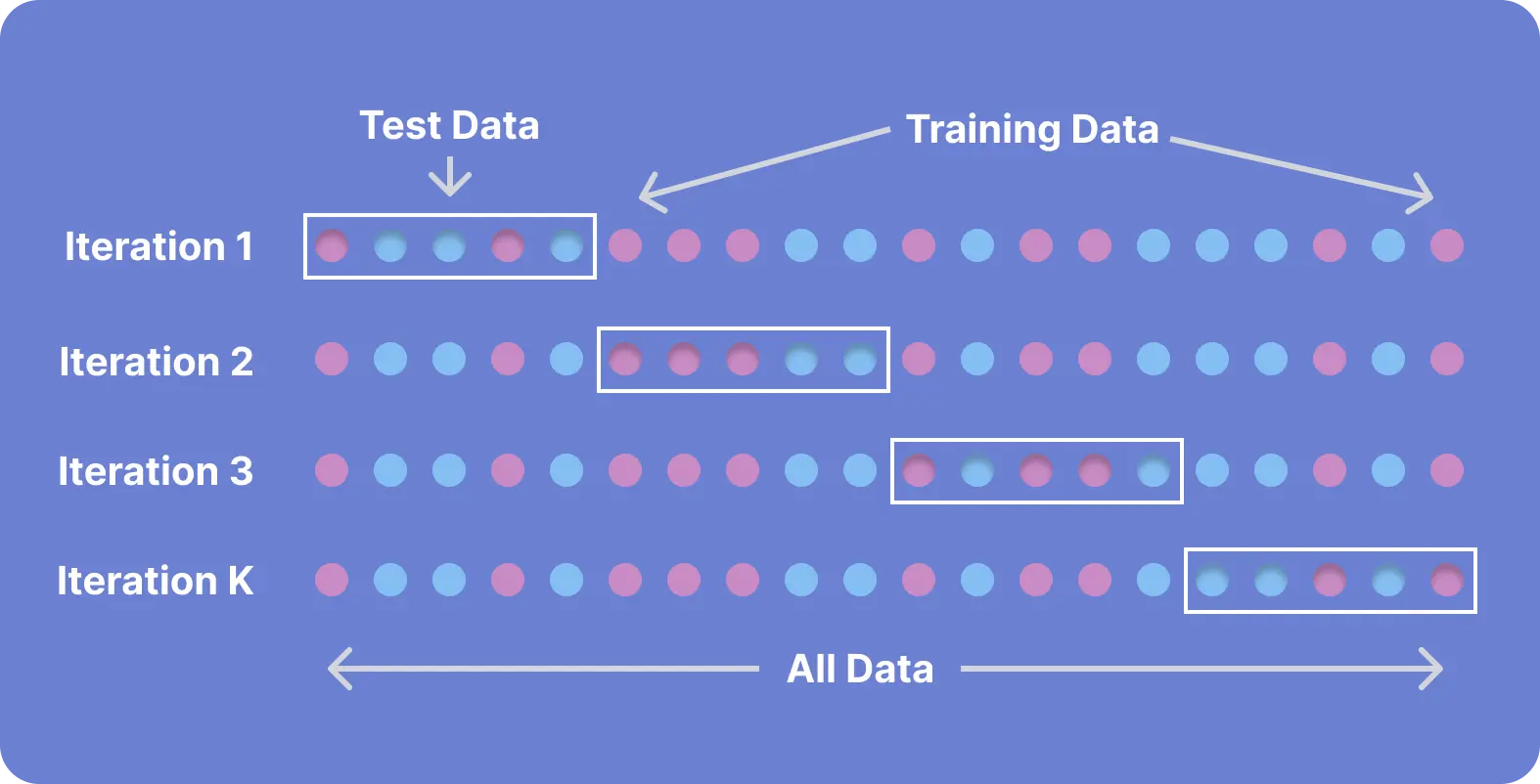 Tabular data continues the paradigm of separating training and test data, so that the model doesn’t “memorize” the training data and overfit—regurgitate examples it has seen, but fumble its response to ones it hasn’t. It even enables you to dynamically shift the sections of the table that you’ll use (best practice is to randomize the split, or randomize the table first) such that test, train, and evaluation sets are all in windows that can be slid or swapped across your dataset. This is known as cross-fold validation, or n-folds validation, where n represents the number of times the table is “folded” to divvy up your training and test sets in different portions of the table.